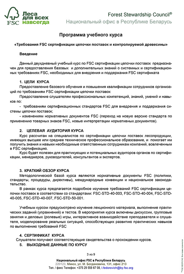 В приложении письмо касательно FSC сертификации в Республике Белаурсь