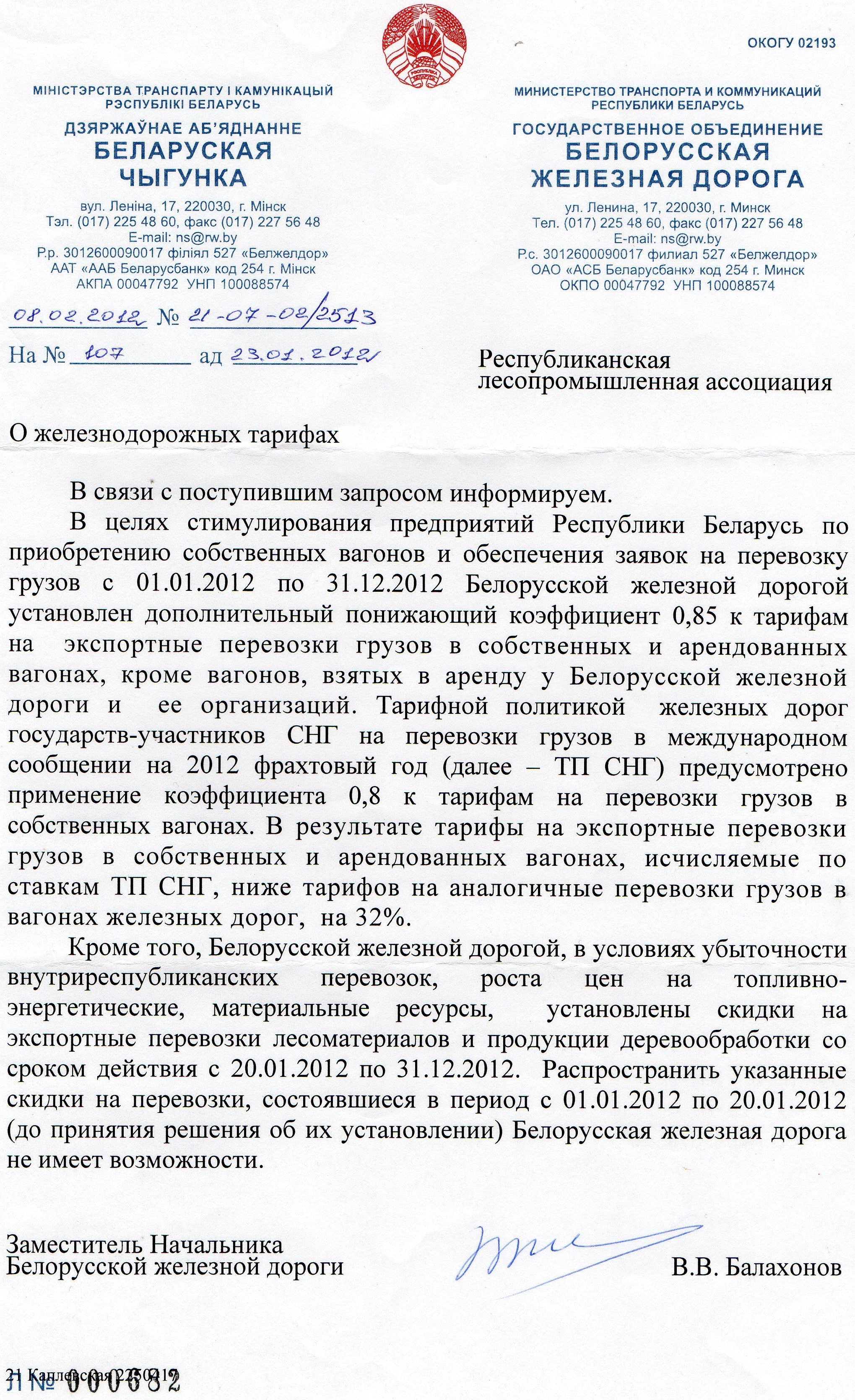 на письмо РЛПА "Об изменении даты введения скидки к тарифам"