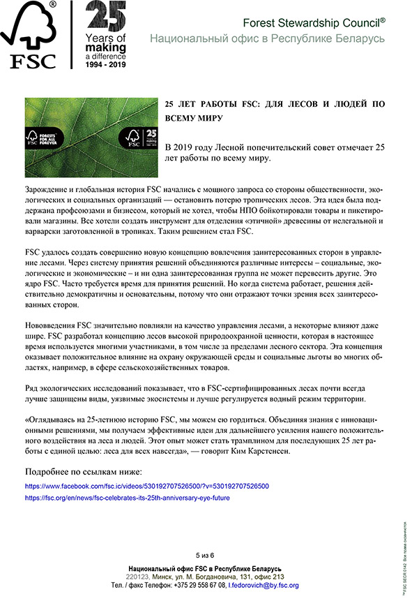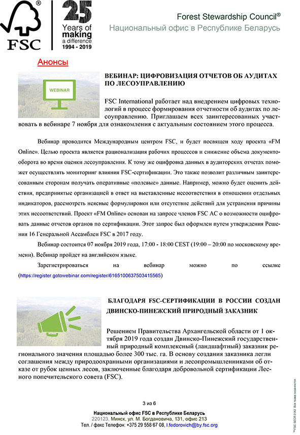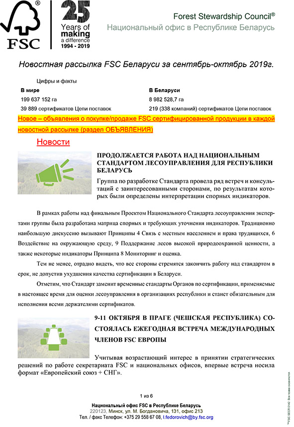 FSC. Новостная рассылка за сентябрь-октябрь.