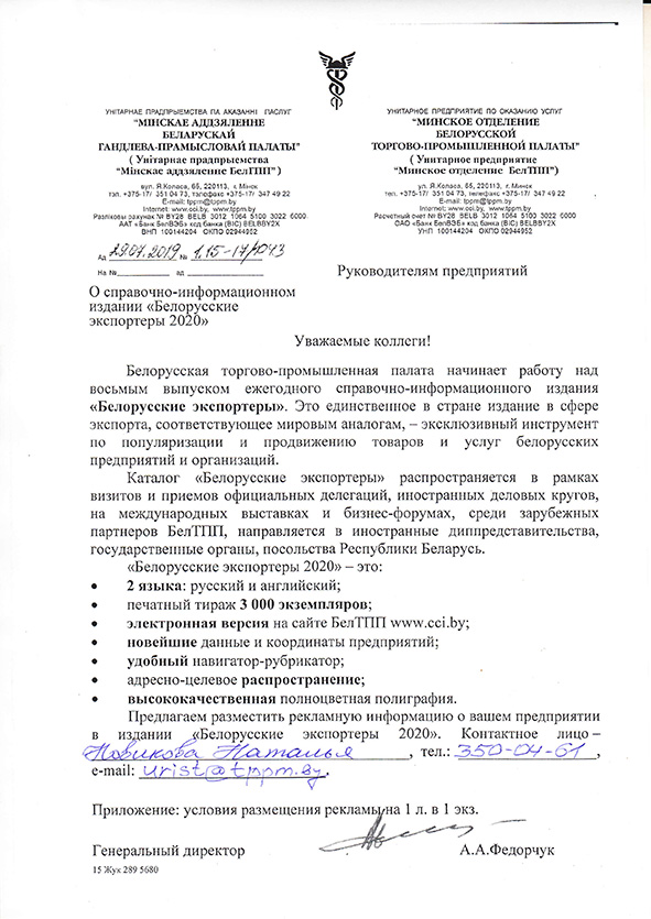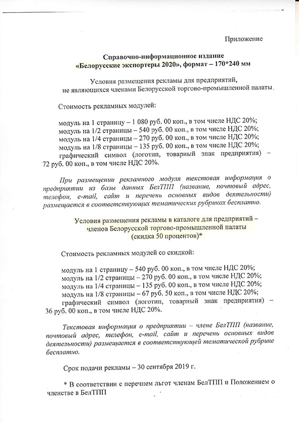 О рекламе в каталоге БЕЛОРУССКИЕ ЭКСПОРТЕРЫ 2020.