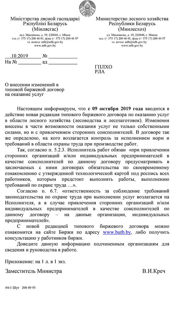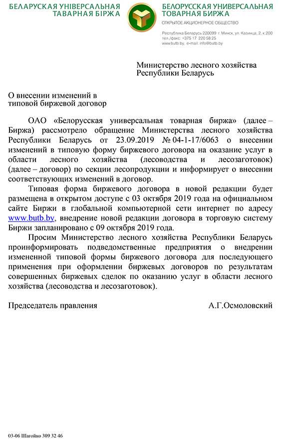 О внесении изменений в типовой биржевой договор