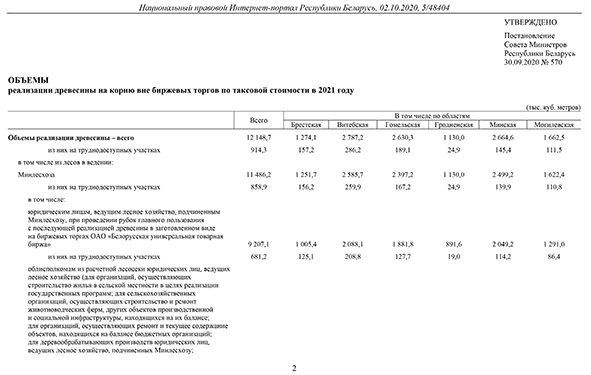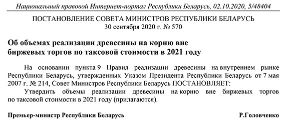 Об объёмах реализации доевесины на корню в 2021г. ПСМ 570 от 30.09.2020