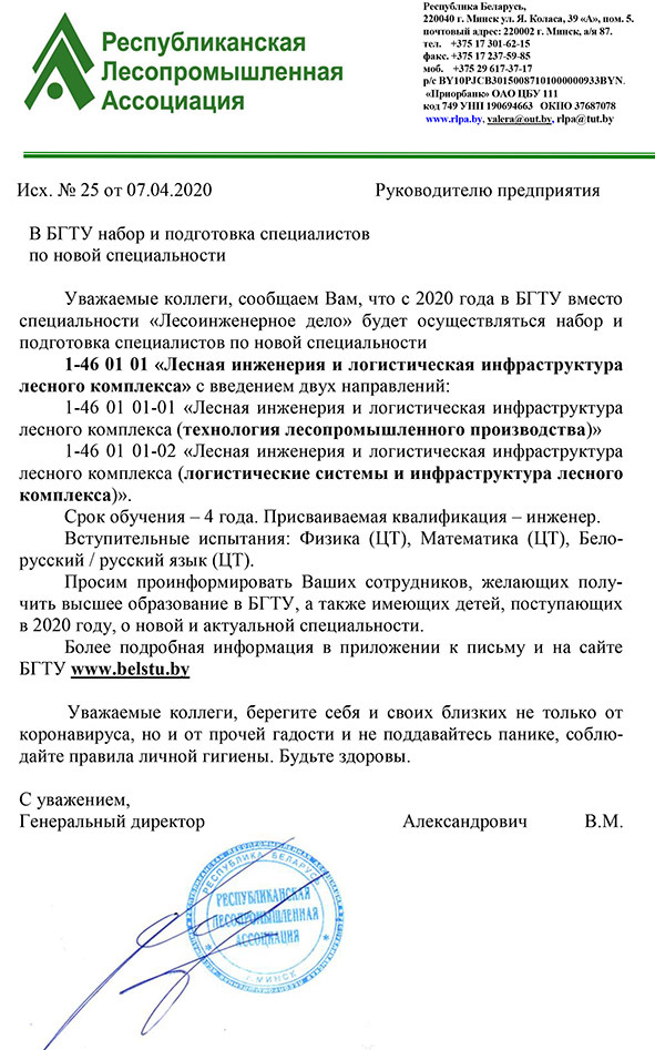 Руководителю о новой специальности в БГТУ