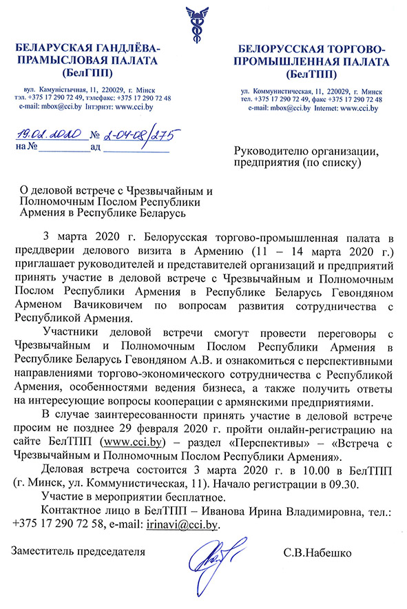 Деловая встреча с послом Армении
