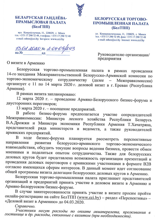 Деловой визит в Армению