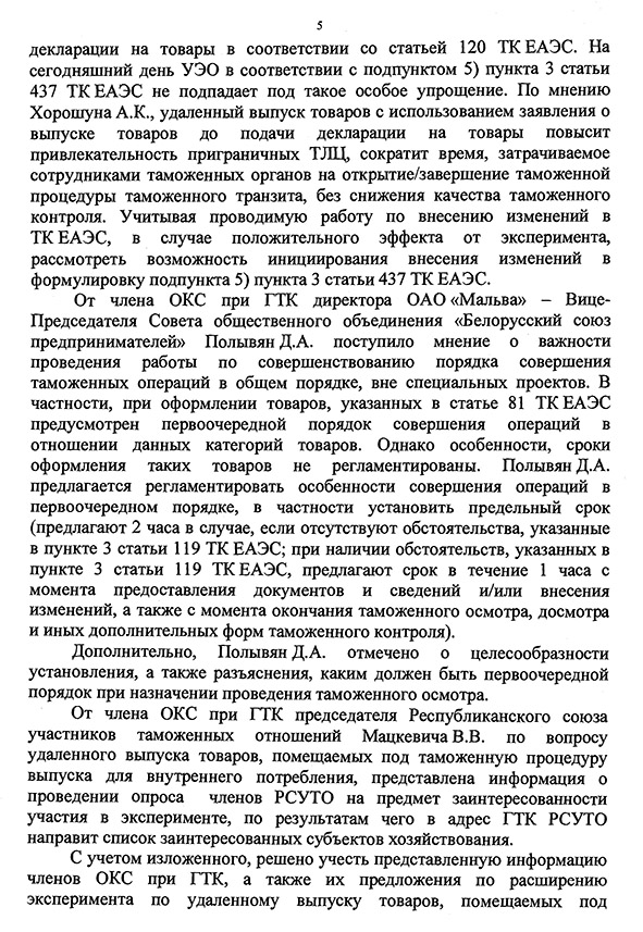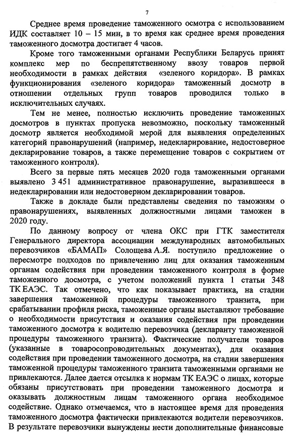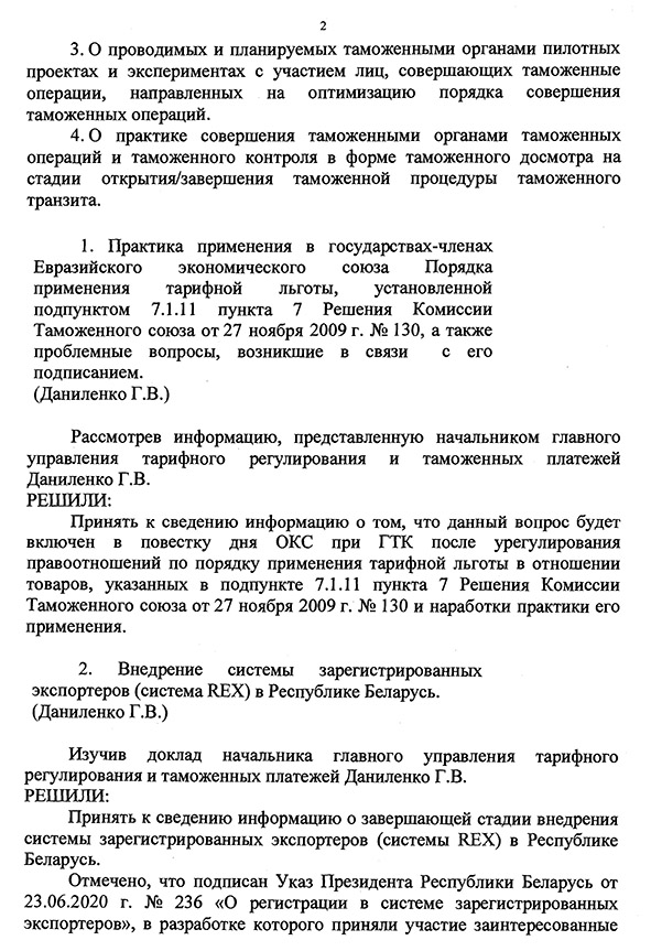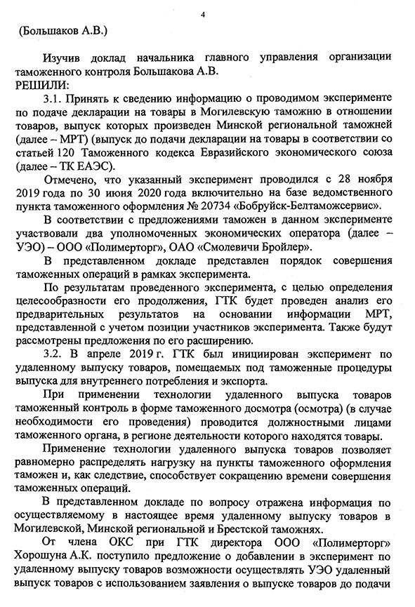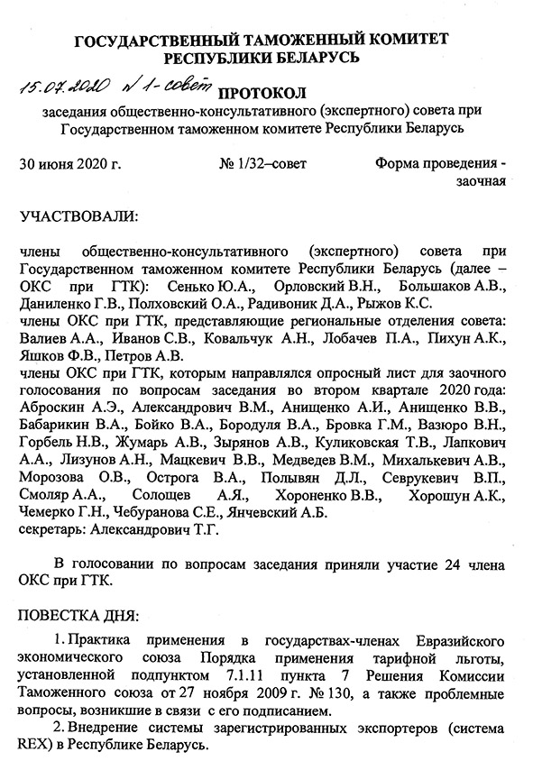 Государственный таможенный комитет Республики Беларусь. Протокол