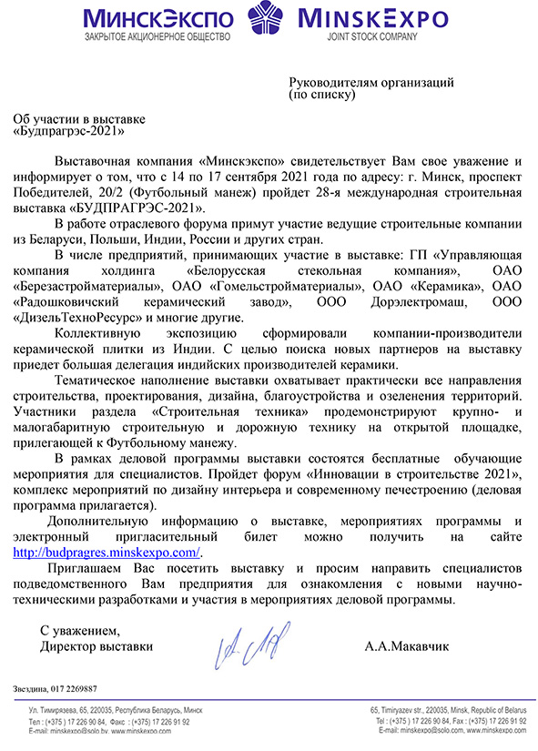 Приглашаем посетить 28-ю международную строительную выставку «БУДПРАГРЭС-2021»