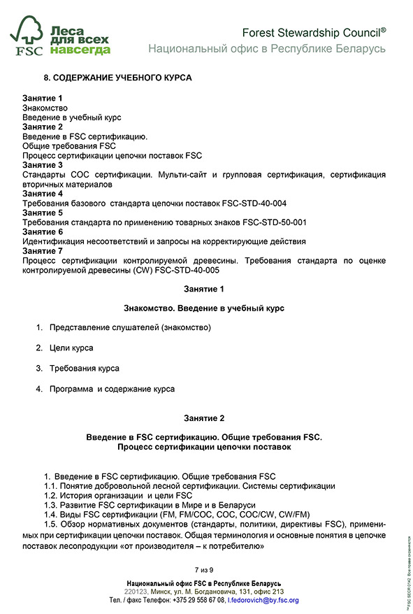 В приложении письмо касательно FSC сертификации в Республике Белаурсь