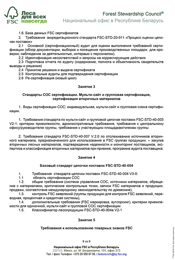 28-29 марта 2019 г. Обучающий семинар FSC по Цепи поставок и контролируемой древесине