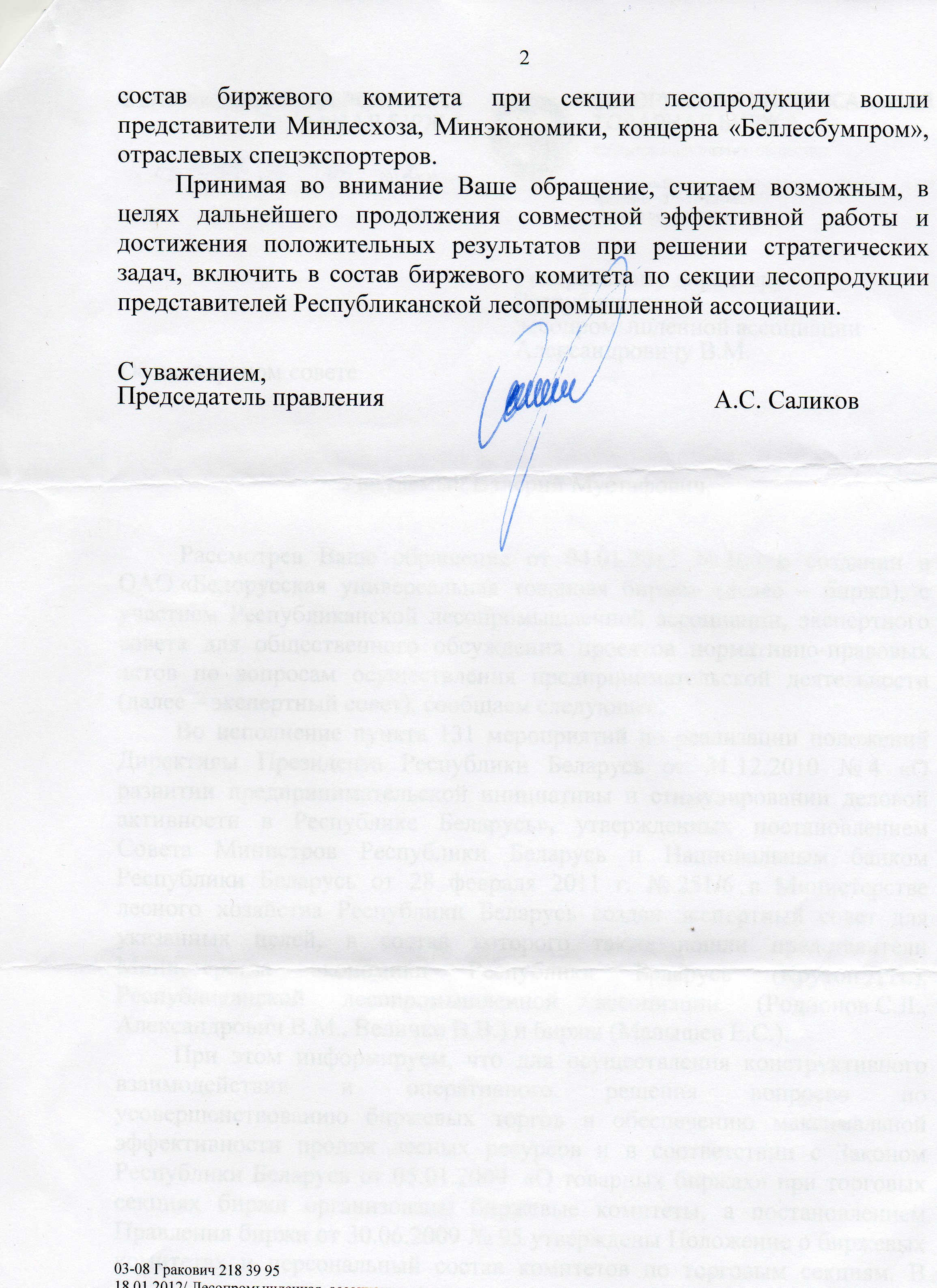 Ответ БУТБ на письмо РЛПА о создании эксп. совета