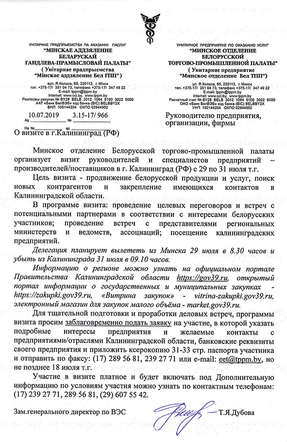 Деловой визит белорусских предприятий в Калининград (Россия)