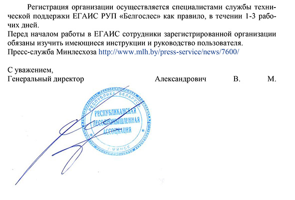 Исх.103. Руководителю о регистрации в ЕГАИС