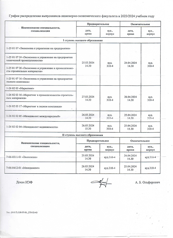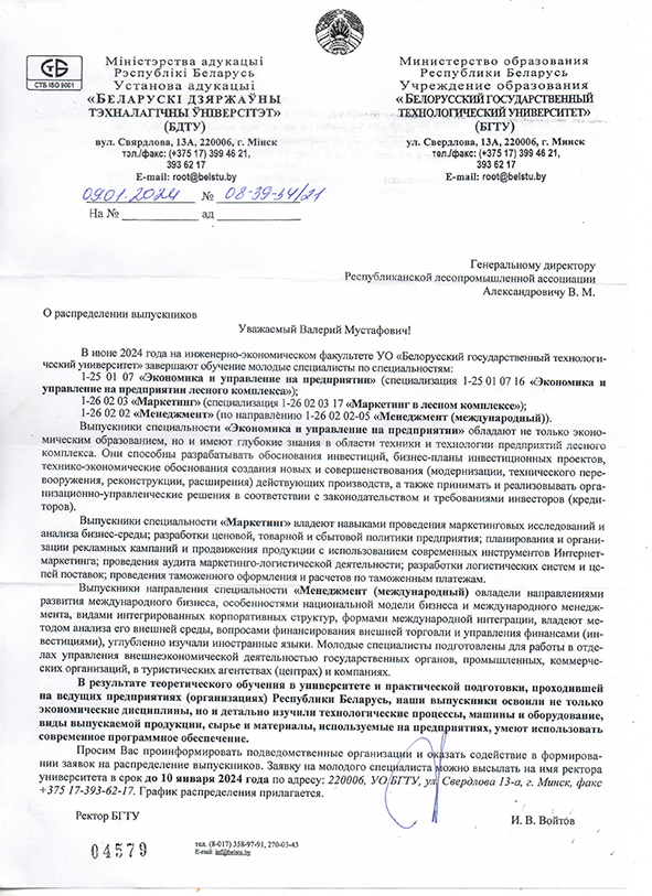 О распределении выпускников инженерно-экономического факультета БГТУ