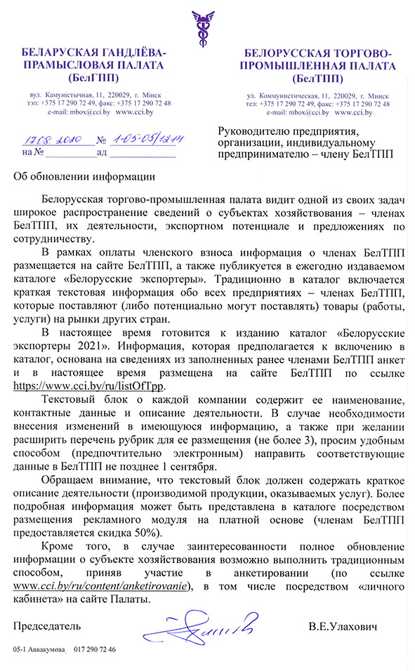 БелТПП - о сведениях о члене БелТПП