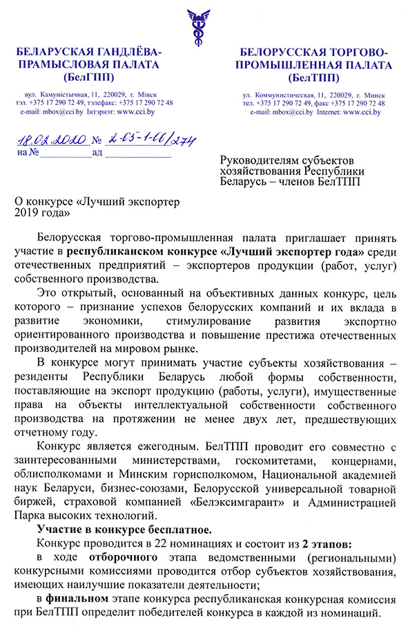 Республиканский конкурс «Лучший экспортер 2019 года»