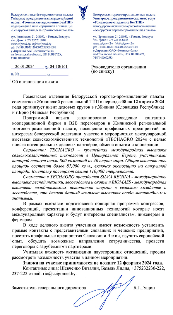 Унитарного предприятия «Гомельское отделение БелТПП»